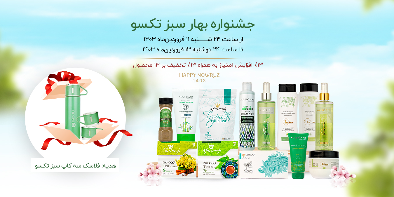 به 13 نفری که بتوانند 13 محصول را در یک فاکتور ثبت کنند، علاوه بر 13% افزایش امتیاز و 13% تخفیف به قید قرعه فلاسک سه کاپ سبز تکسو هدیه داده می شود.