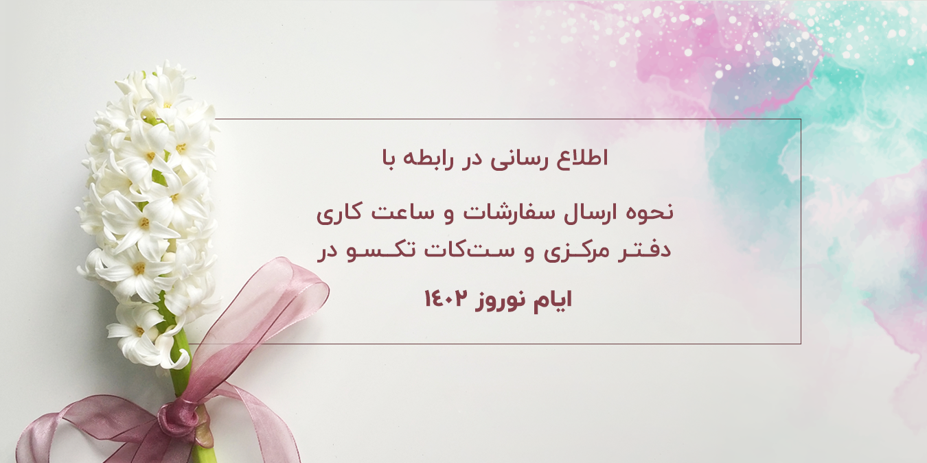 مشاوران و مشتریان محترم شرکت تکسو؛ به اطلاع می‌رساند نحوه ارسال سفارشات و ساعت کاری دفتر مرکزی و ست‌کات تکسو در ایام نوروز 1402 به شرح ذیل می باشد: