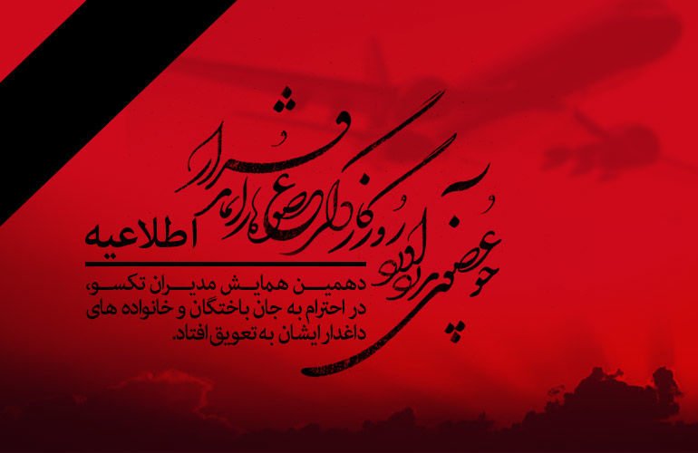 با توجه به وقوع رویدادهای اخیر، سازمان تکسو در جهت احترام به جان باختگان این سوانح و اعلام همدردی با خانواده‌های ایشان برگزاری مراسم دهمین همایش مدیران را به تعویق انداخته و تسلیت خانواده بزرگ تکسو در سراسر ایران را به خانواده های این عزیزان اعلام می‌دارد.