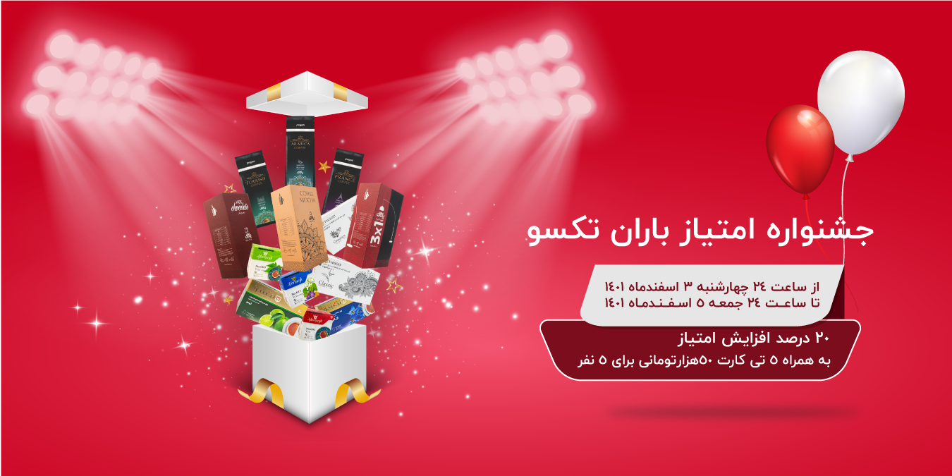 شما مشاوران و مشتریان عزیز می توانید با خرید هر یک از محصولات موجود در جشنواره زمستانی امتیاز باران تکسو از 20% افزایش امتیاز بهرهمند شوید.