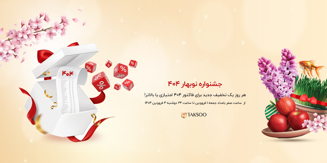 به مناسبت فرارسیدن نوروز و شروع سال 1404، تکسو جشنواره نوبهار 404 را با تخفیف‌های ویژه برای مشاوران عزیز برگزار می‌کند. این جشنواره از تاریخ 1 تا 4 فروردین ماه 1404 برگزار می‌شود و فرصتی استثنایی برای بهره‌مندی از تخفیف‌های ویژه بر اساس ثبت فاکتورهای 404 امتیازی یا بالاتر فراهم شده است.
