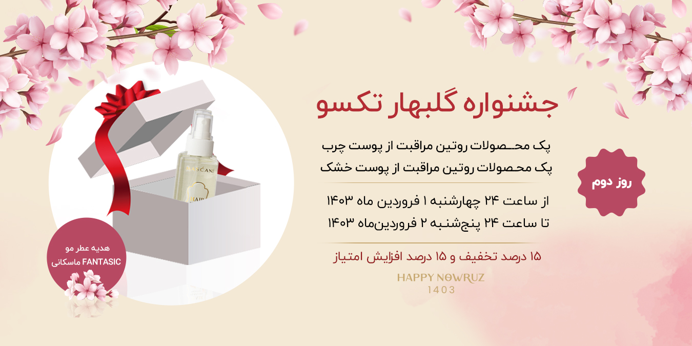 جشنواره گلبهار تکسو شما را به دنیایی از محصولات مراقبتی و غذایی با تخفیفها و هدایای جذاب دعوت میکند.