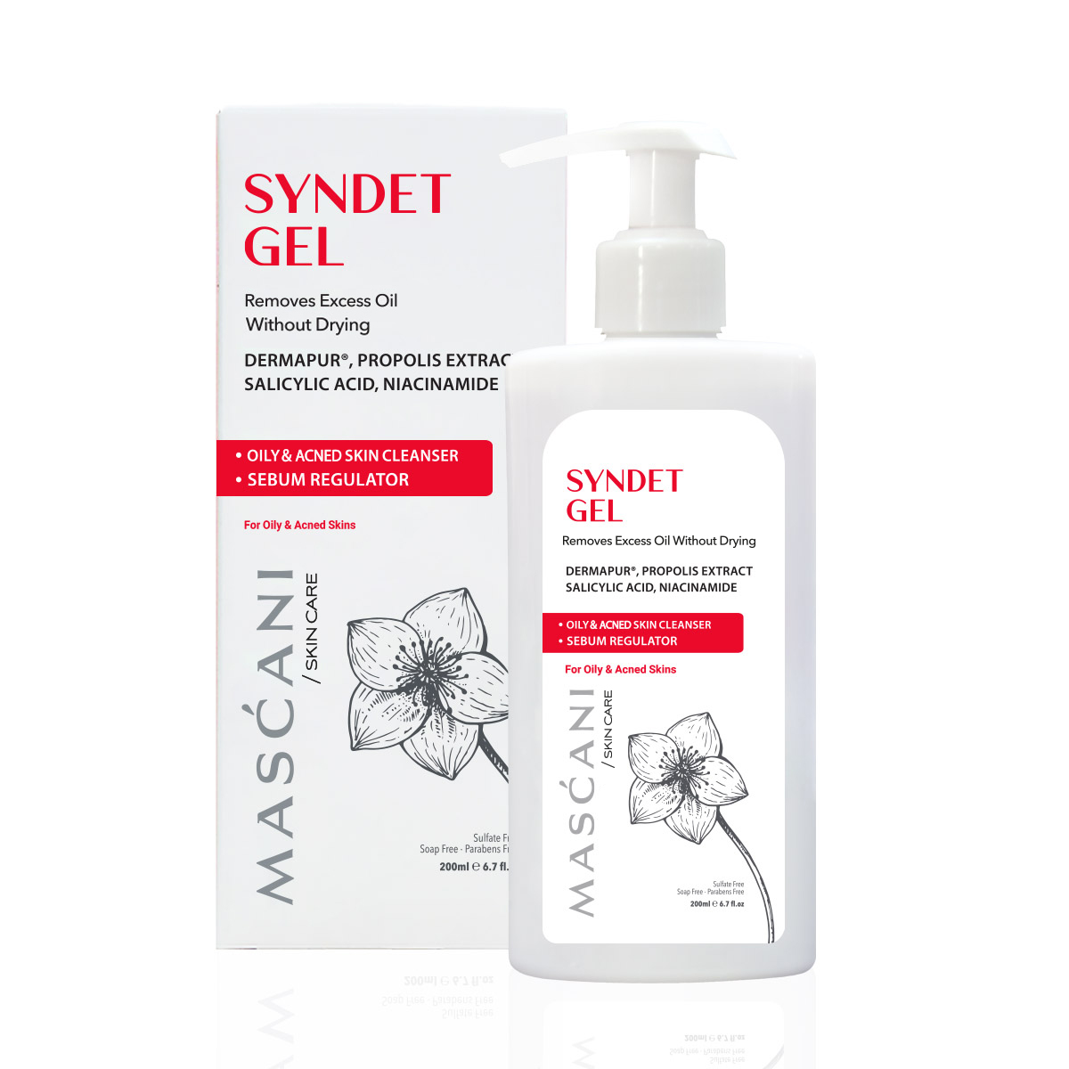 Mascani Facial Cleansing Gel for Oily and Acne-Prone Skin (free from parabens, sulfates, and soap-based ingredients) effectively removes excess oil, impurities, and makeup residue from the pores. It helps minimize pore size, inhibit bacterial growth, and improve acne-prone skin’s overall clarity and balance.