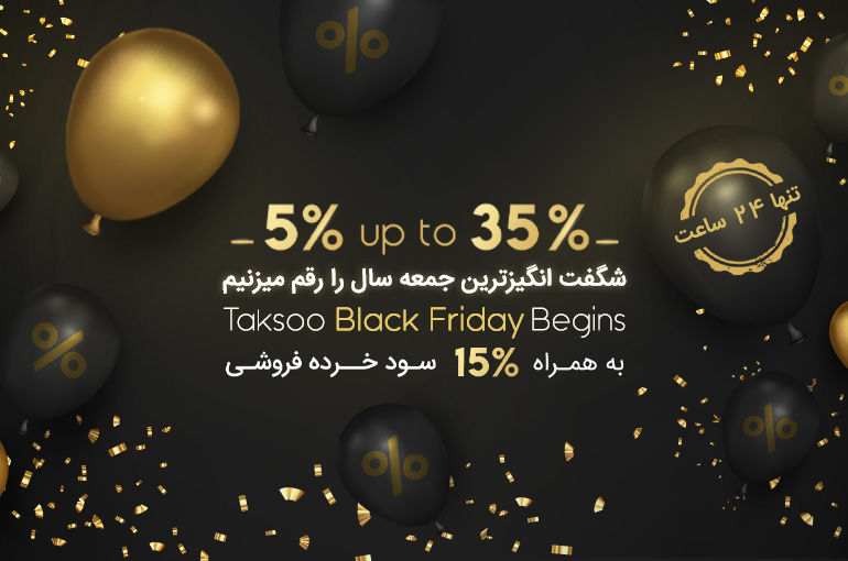 مشاوران محترم تکسو از تخفیفات ویژه Black Friday تکسو 5 تا 35 درصدی (به همراه 15% سود خرده فروشی) استفاده کرده و ویژه ترین خرید سالتان را تجربه کنید.