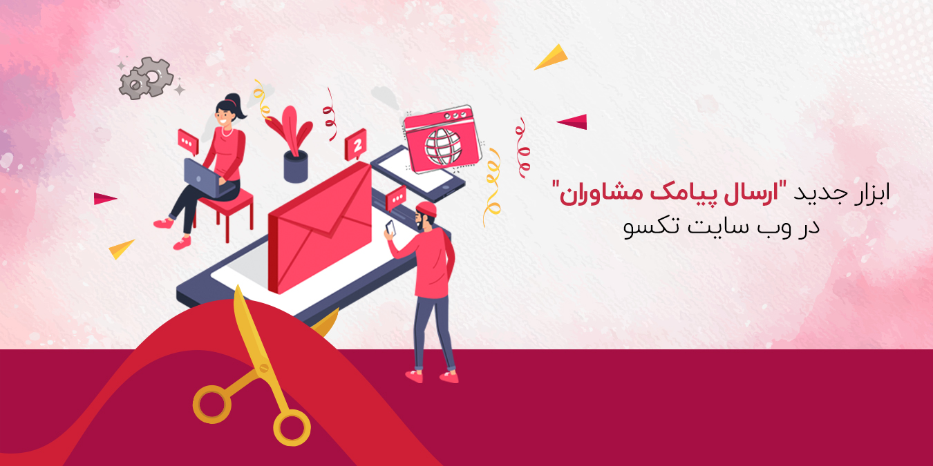 مفتخریم که اعلام کنیم، ابزار ارسال پیامک تکسو از امروز 25 تیرماه 1404 در داشبورد دفتر کاری مشاوران فروش قرار گرفته و شما میتوانید با استفاده از این پنل برای مشتریان خود پیامک ارسال کنید. جهت استفاده از این ابزار به دفترکاری خود در وب سایت رسمی تکسو مراجعه کرده و از منوی سمت راست، سرتیتر تجارت من، زیرمنوی ابزارها، گزینه ارسال پیامک را انتخاب کنید. جهت اطلاع از نحوه دقیق عملکرد این پنل، می توانید به شبکه های اجتماعی شرکت تکسو مراجعه کرده و ویدئوهای آموزشی را مشاهده نمایید.
