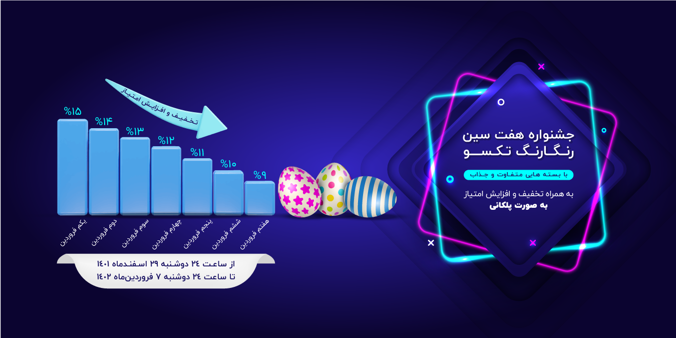 تکسو به مناسبت نوروز 1402 جشنواره هفت سین رنگارنگ تکسو را با پیشنهادات هیجان انگیز و بسته های جذاب و متنوع برگزار می‌کند.