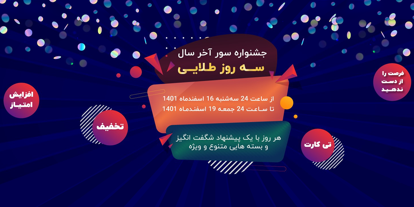 در مرحله سوم جشنواره سور آخر سال که از ساعت 24 پنج‌شنبه 18 اسفند تا ساعت 24 جمعه 19 اسفند 1401 برگزار خواهد شد، بسته هایی ویژه همراه با تی کارت 50هزارتومانی به ازای خرید هر بسته ارائه خواهد شد که شامل محصولات زیر خواهد بود:
